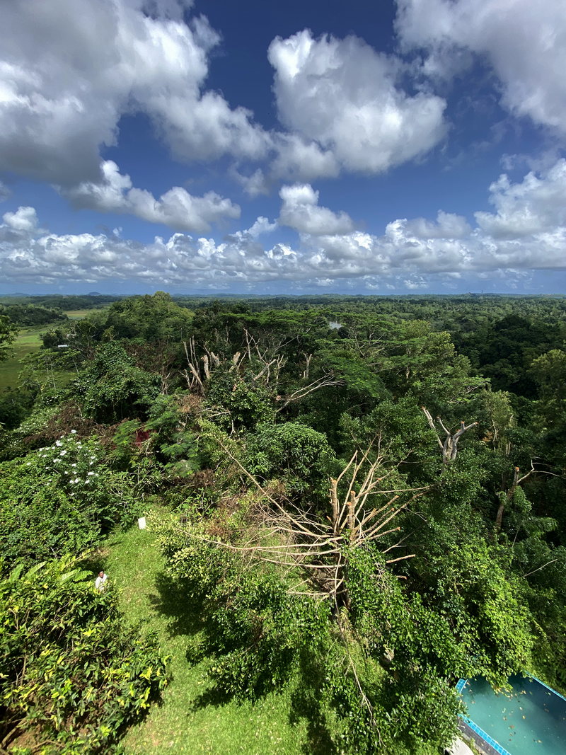 The terrain is heavily terraced (photo= 2018) - but by now all levels are fully overgrown with trees (mango, lime, star fruit).