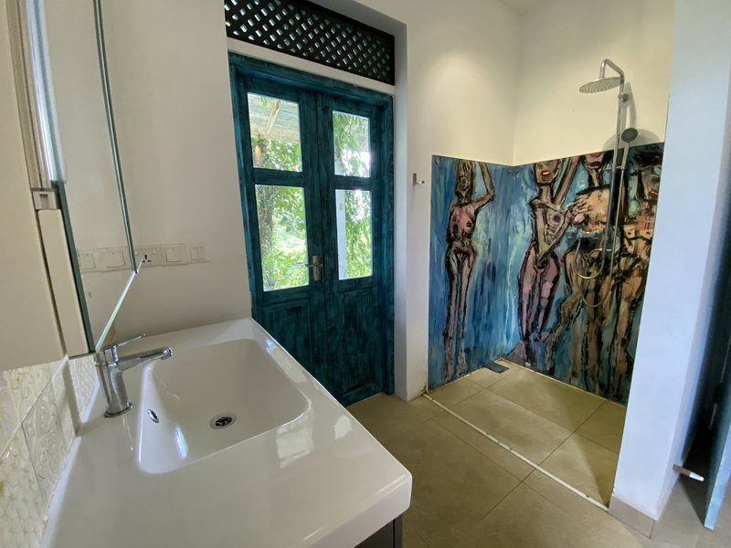The 5,800 m² (= 1.45 acre = 232 perch) property is part of a 32,000 m² (= 8 acres) former plantation hill with 700+ m private road that is being developed by German and Sri Lankan professionals.